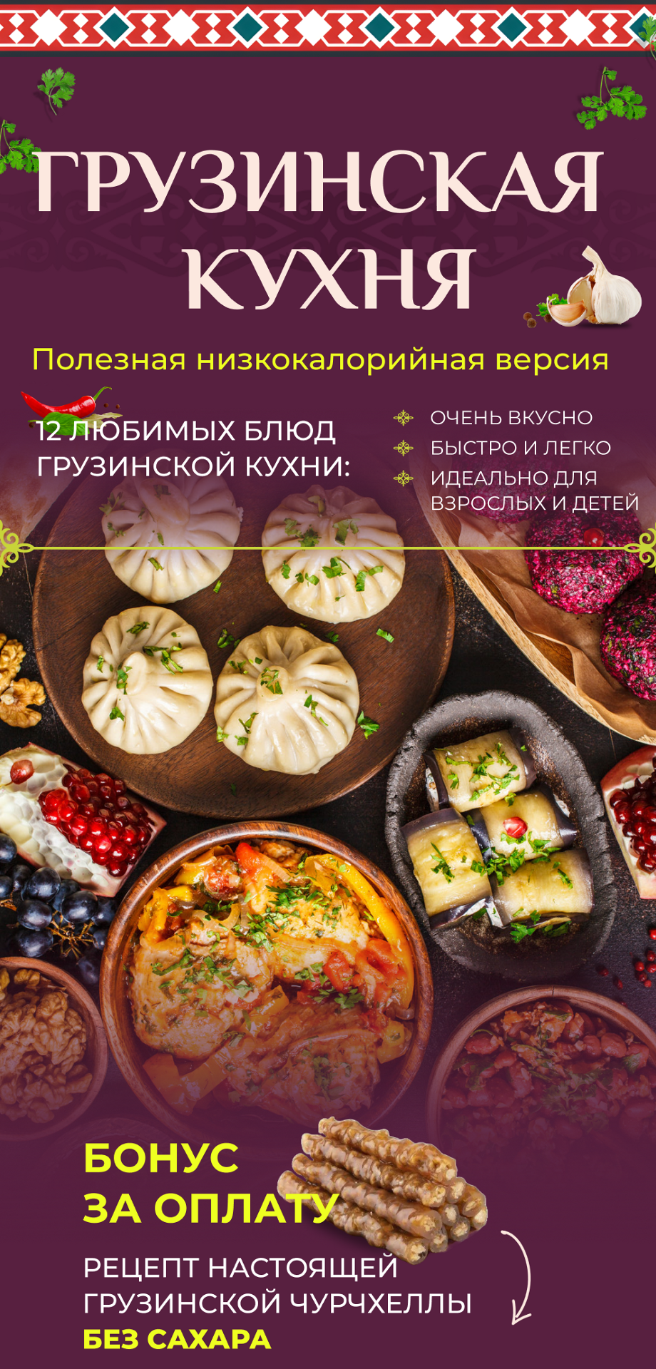 Мы решили это противоречие и сохранили колорит грузинской кухни, СОЗДАЛИ ЕЕ ПОЛЕЗНУЮ НИЗКОКАЛОРИЙНУЮ ВЕРСИЮ!