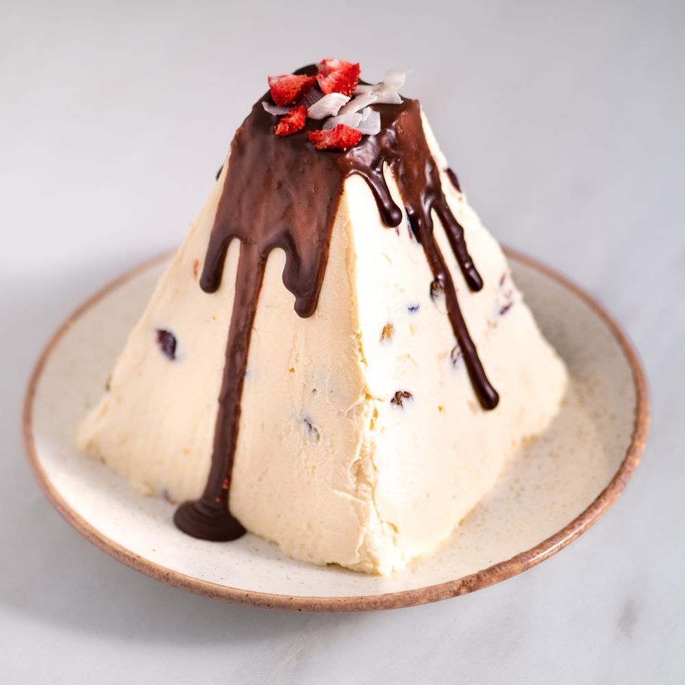 Нежное лакомство, дополняющее традиционный пасхальный стол. У этой полезной версии тающая во рту текстура с аппетитными вкраплениями любимых сухофруктов, благодаря которым вкус становится еще более интересным и многогранным.