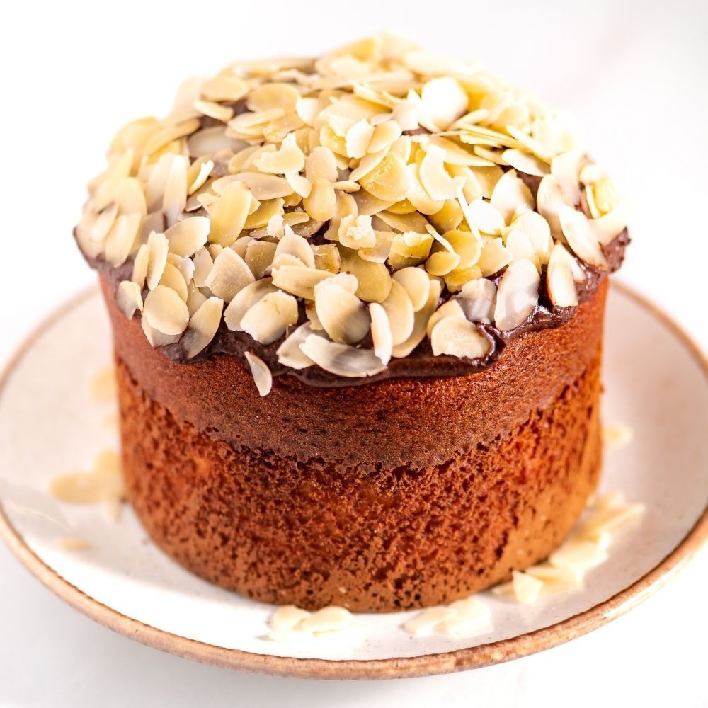 Бисквит в этом куличе получается таким сочным, нежным и упругим, что невероятно вкусен и самодостаточен даже без наполнения. Но в сочетании с насыщенной шоколадной начинкой дарит просто райское наслаждение. Его украшает шапка из тончайших ароматных миндальных лепестков