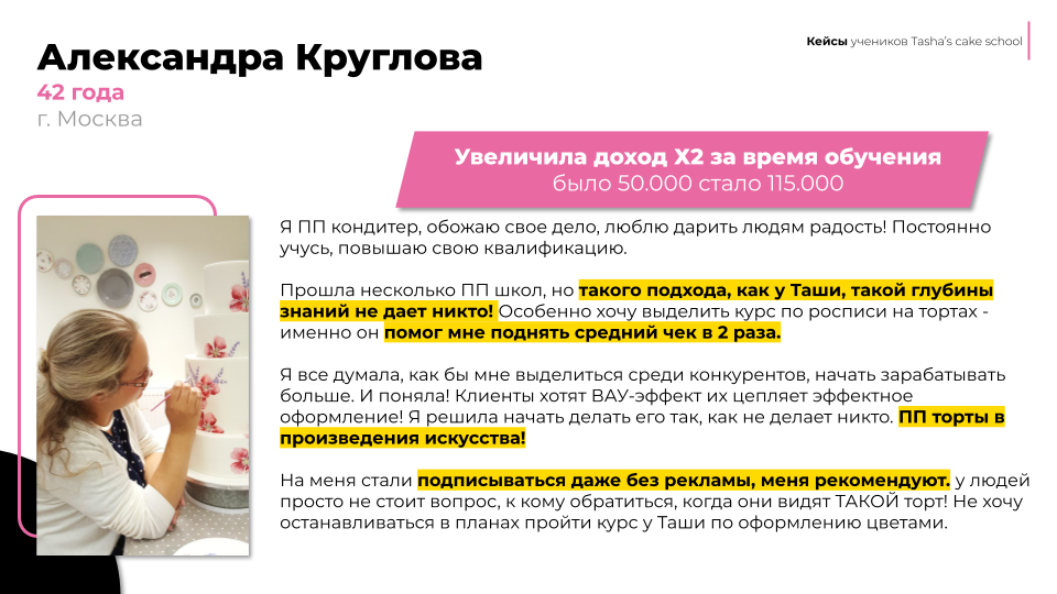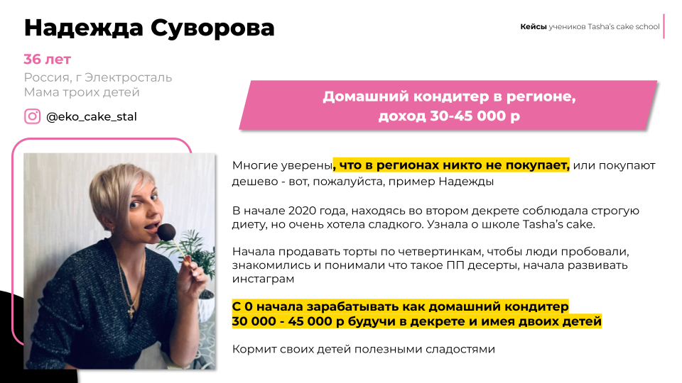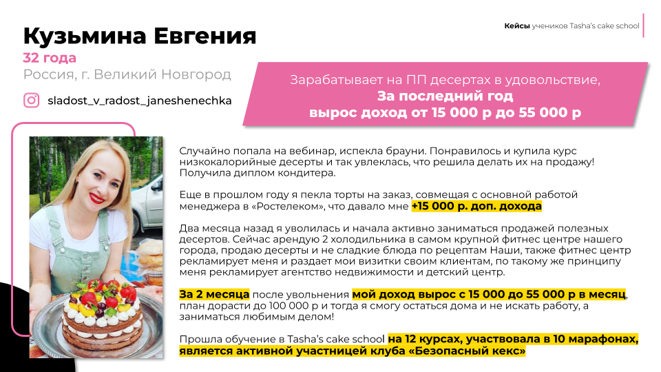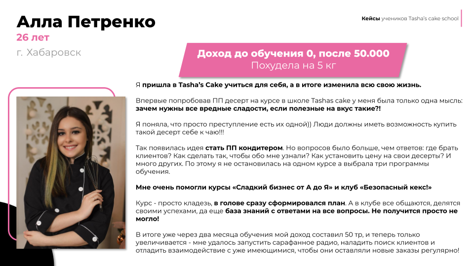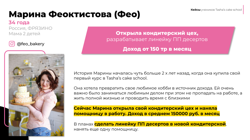 ➤ Основательница главной онлайн-школы диетических десертов «Tasha’s Cake School»
